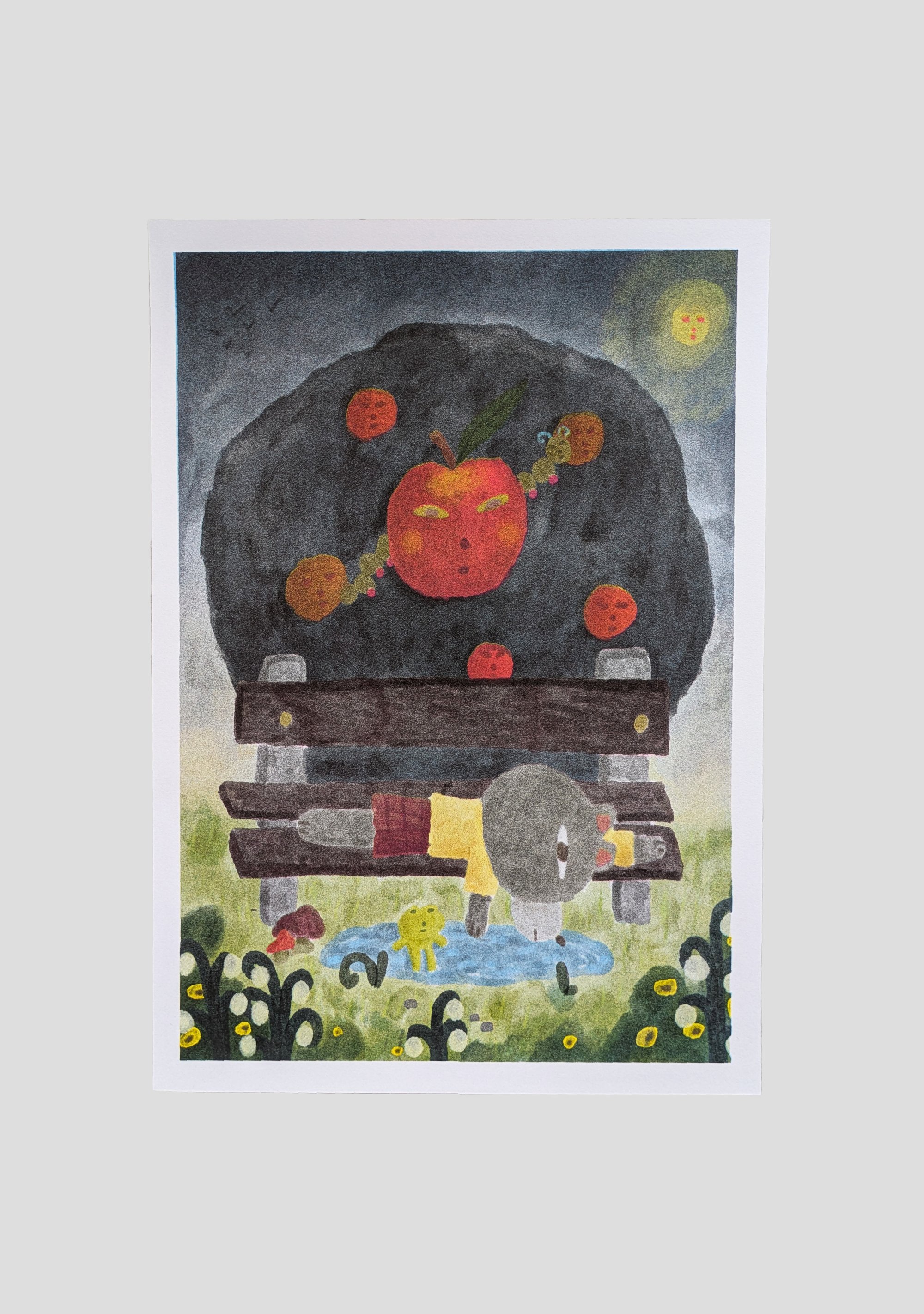 La risographie étant un procédé d'impression couche de couleur par couche de couleur, demandant un travail de calage, chaque exemplaire peut présenter des petits défauts (décalage de couche, sur/sous encrage..). Ce qui les rend également tous différents les uns des autres et par conséquent, uniques.
